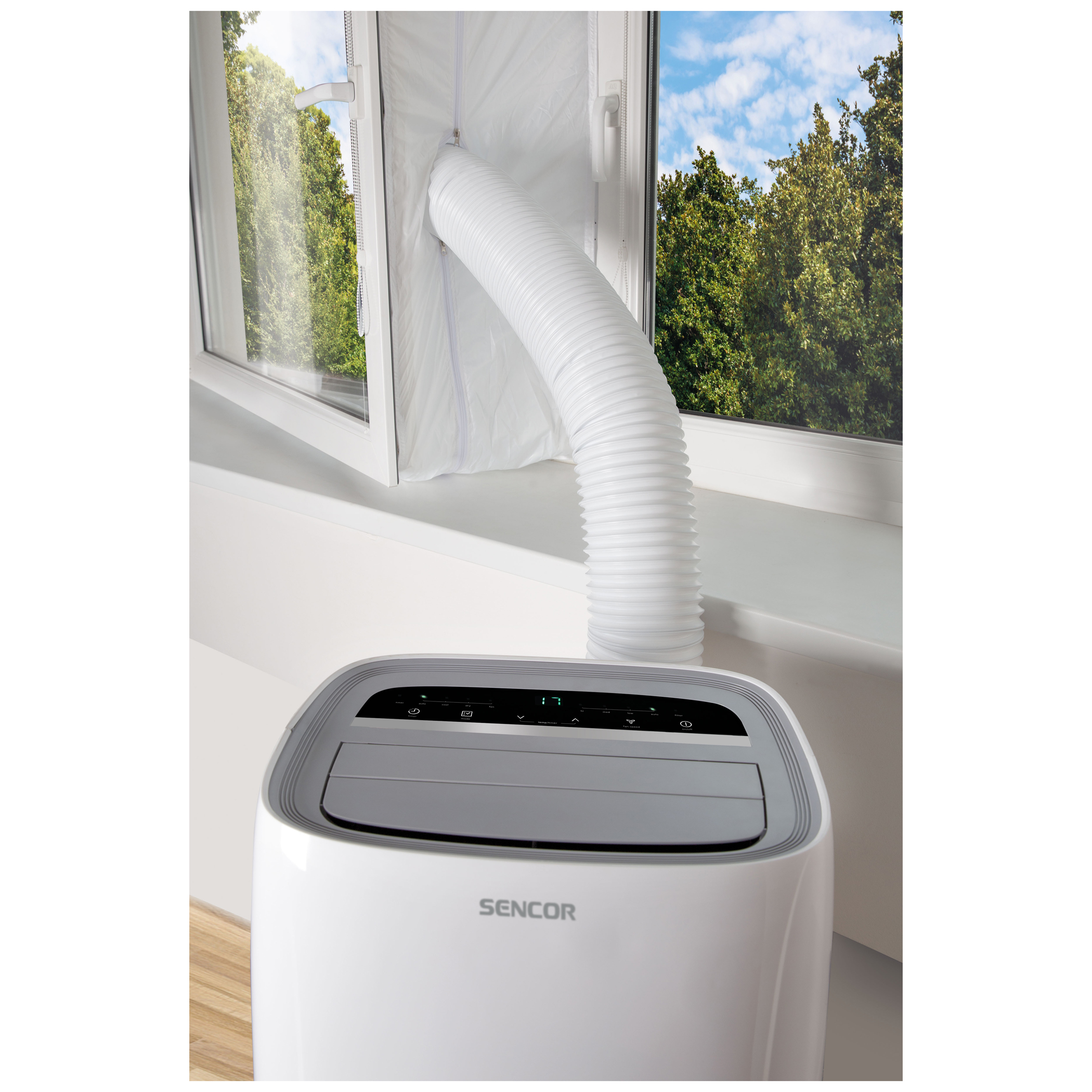 خزان مدمج للمياه المتكثفة (حجم 0.5 لتر) يحتوي على منفذ للصرف ومؤشر بصري للامتلاء (في حالة وجود رطوبة عالية للغاية في الغرفة فوق الحد الأقصى لقدرة نظام التبخير الذاتي)