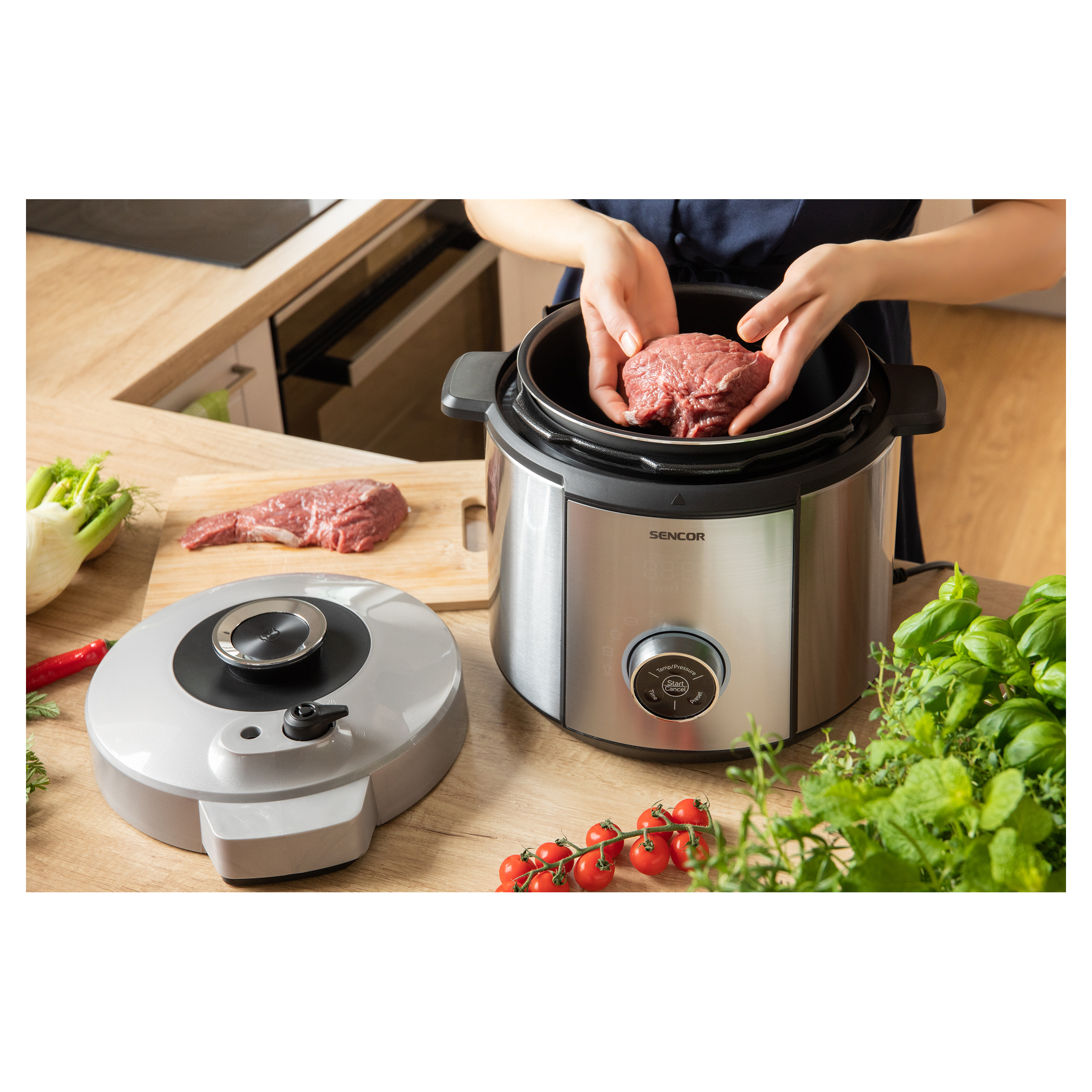 يضمن نظام الأمان المتعدد الذي يحتوي على صمامات قفل تعمل أثناء عملية الطهي أقصى درجات الأمان عند الضغط العالي
