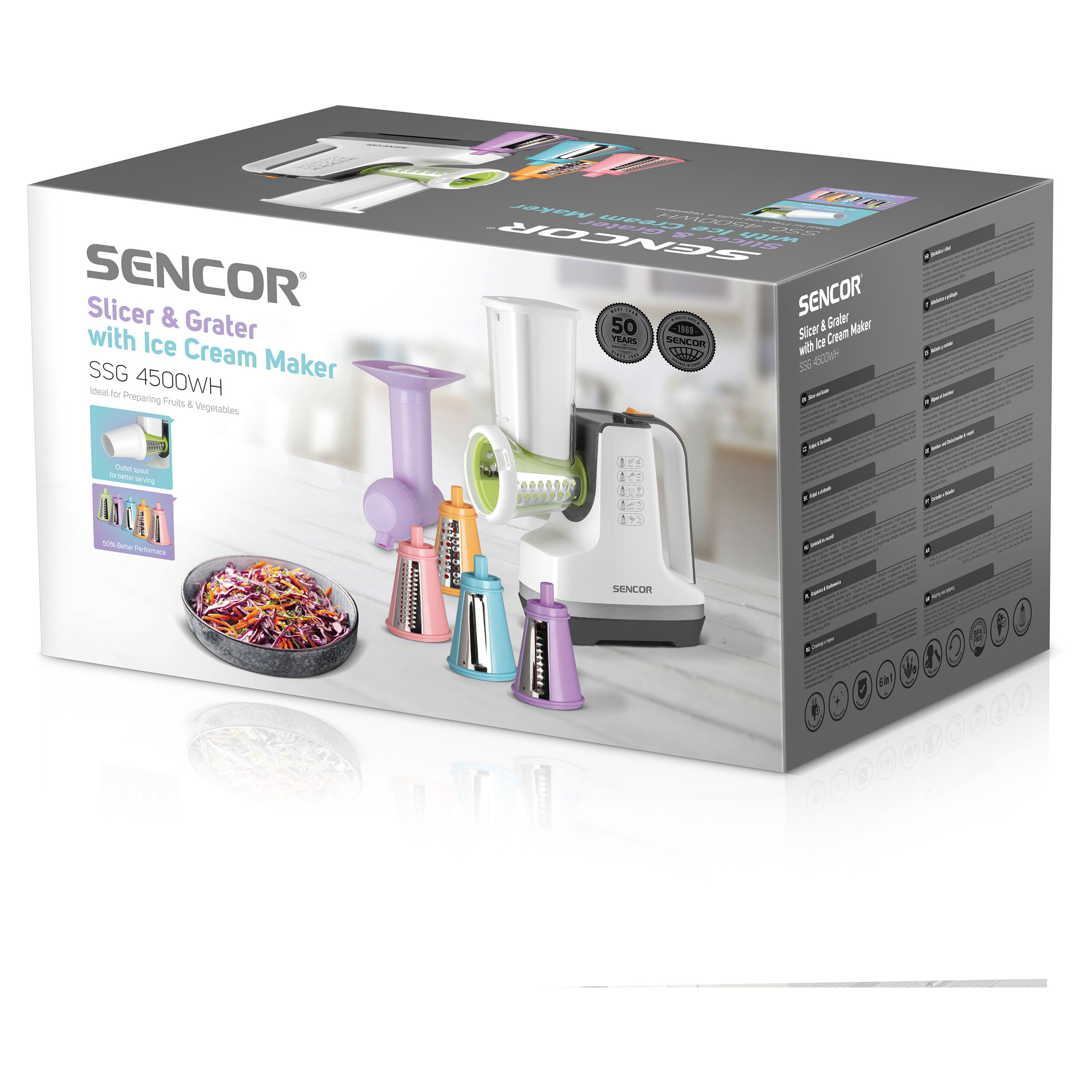الوزن: 1.95 كجم مع قطاعة ومبشرة مع ماكينة صنع الآيس كريم 6 وظائف