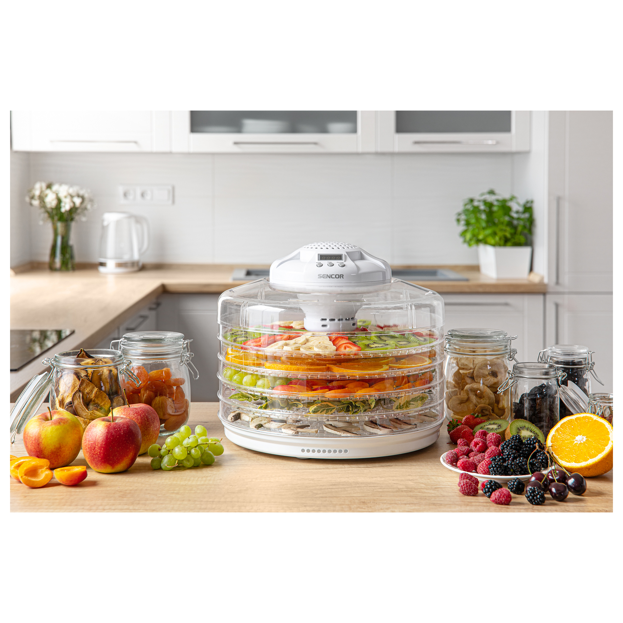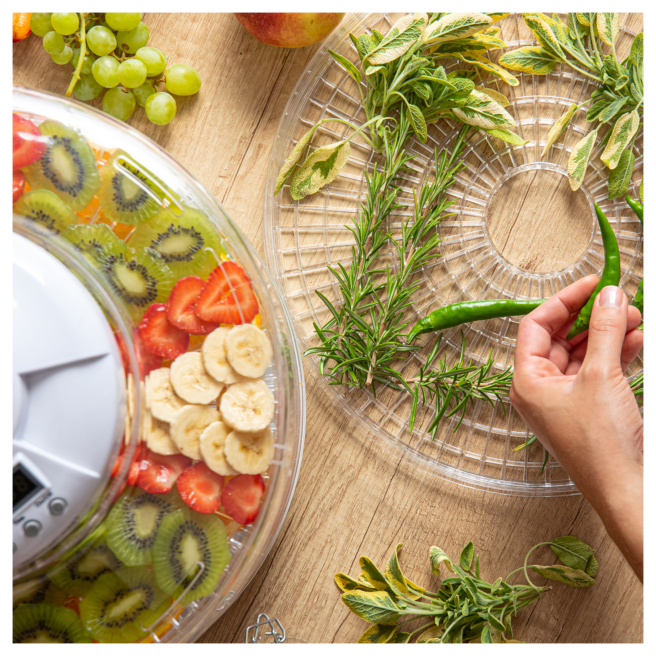 5 برامج أوتوماتيكية لـ مجفف طعام عالي السعة به منطقة تجفيف تام تبلغ 1.18 متر مربع (أكبر 65٪ من مجفف الطعام القياسي بقطر 32 سم)
