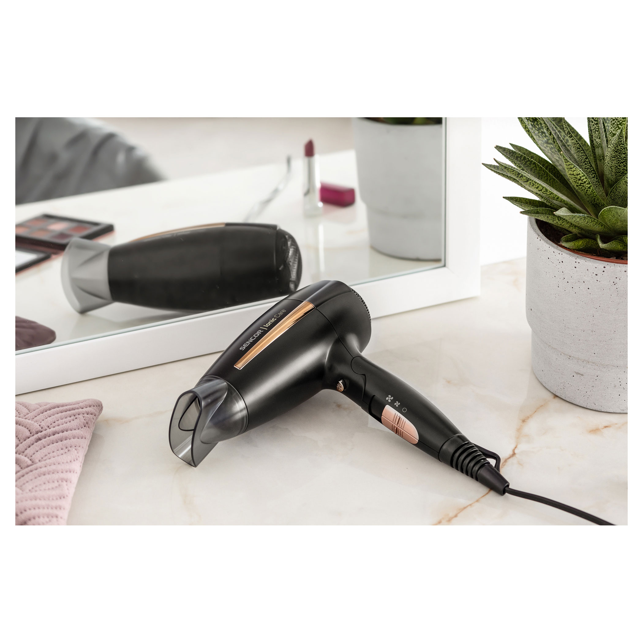 حجم صغير مع محرك تيار مستمر طويل العمر خاصية Cool Shot لتثبيت تسريحة الشعر بشكل مثالي 2 مستويات للحرارة