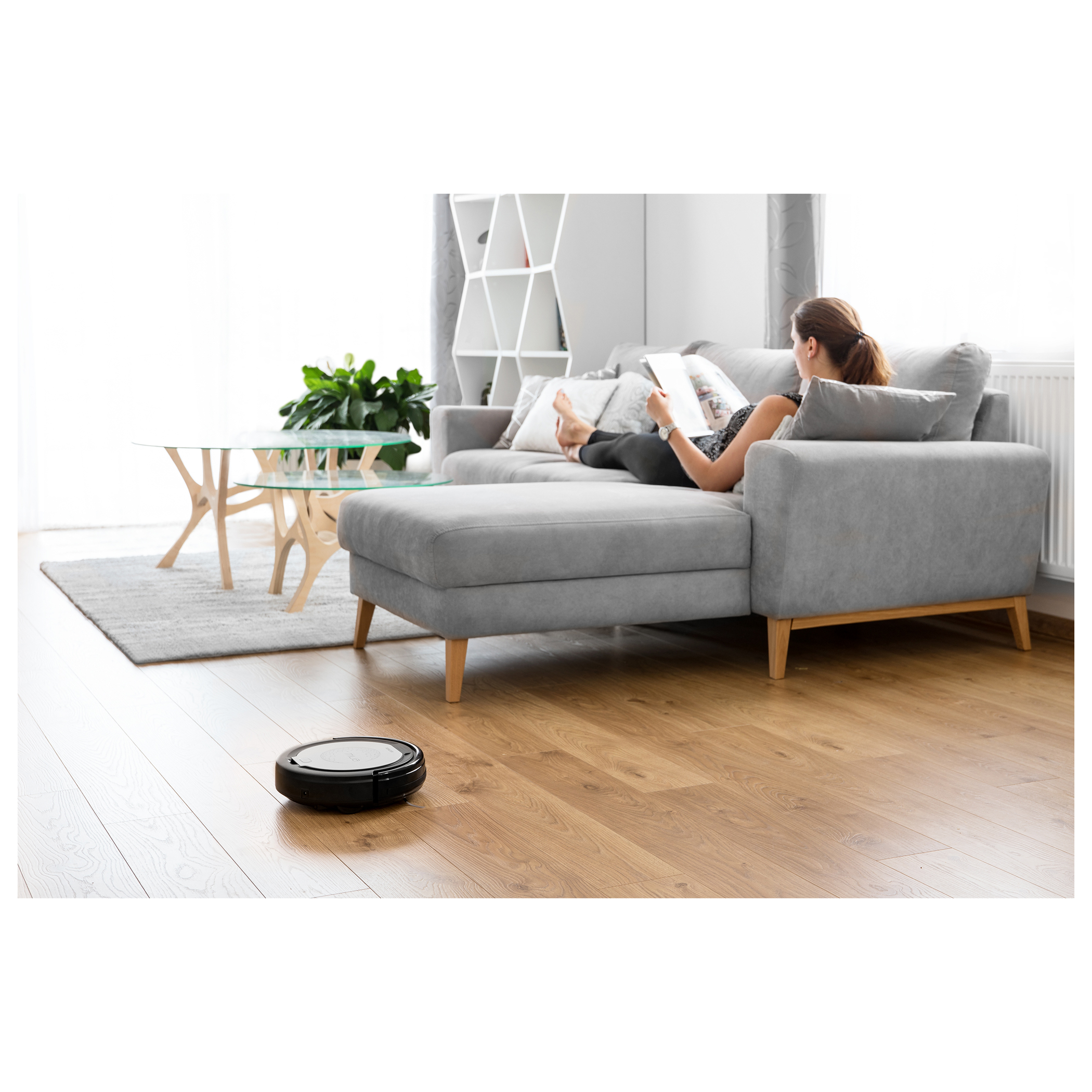مثالية لتنظيف السجاد، والأرضيات العائمة، وأرضيات الباركيه، والمشمع، وبلاط الأرضيات، وما إلى ذلك. مستشعر أمامي مضاد للصدمات يعمل بالأشعة تحت الحمراء تشغيل هادئ للغاية مناسب للحيوانات المنزلية